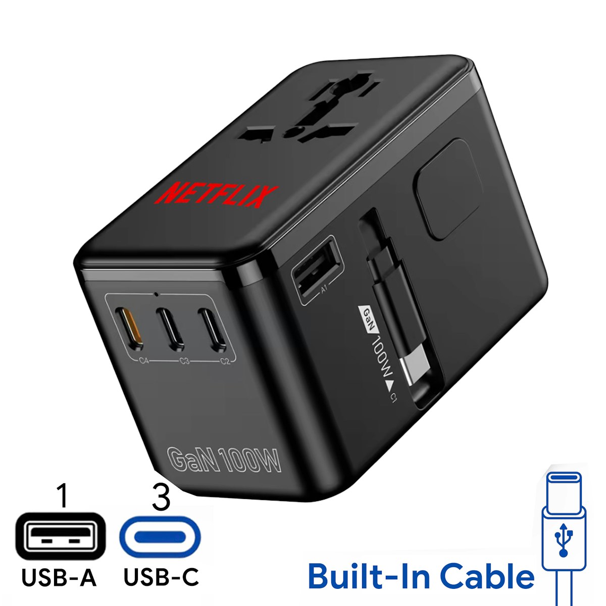 100W GaN Bon Travel Adaptor with Retractable Cable