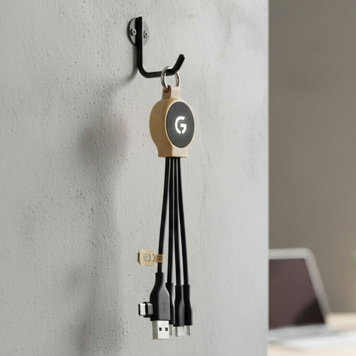 18W Bamboo Charging Cable with Keyring